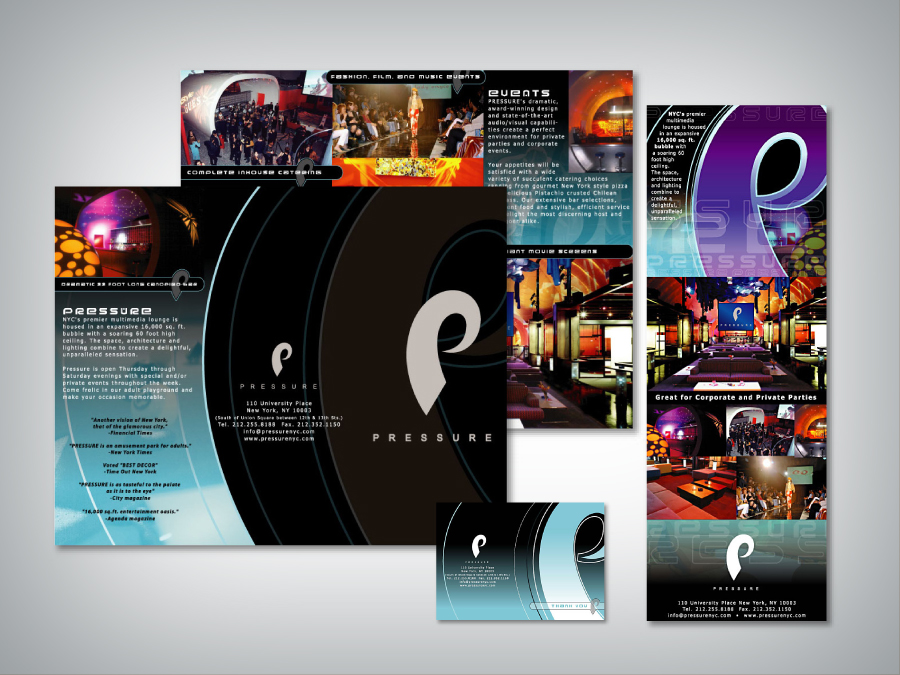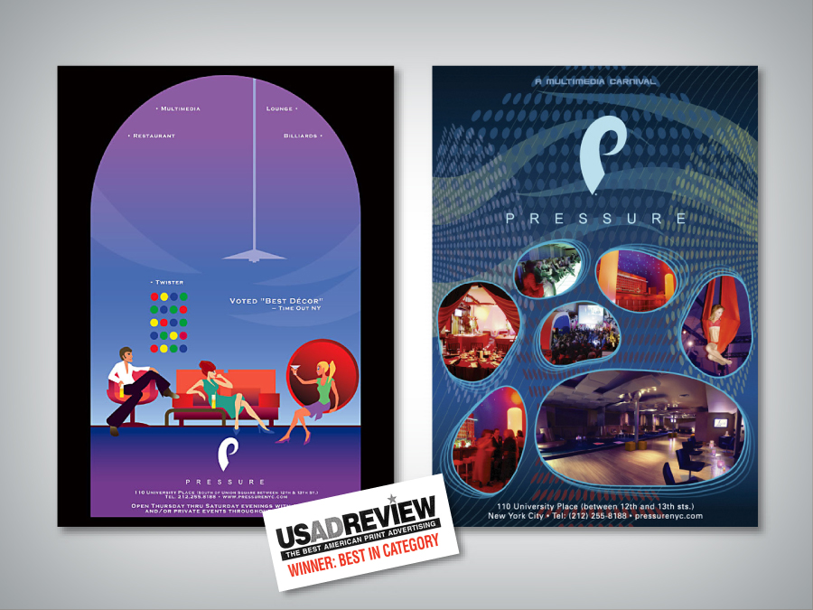 With a sleek sexy design incorporated into it’s brand identity, Pressure had become one of the most renowned corporate events venues in New York City. Advertisements in Time Out NY and Agenda Magazines have been awarded ‘Best in Category’ by USADReview.